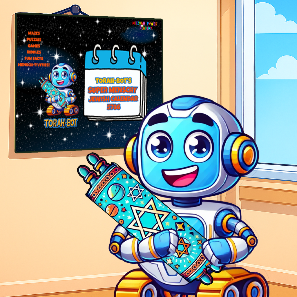 Torah-Bot’s Super Menschy Jewish Calendar with fun “Mensch-Tivities” and great To Do’s to help kids be Super Menschy all year round.